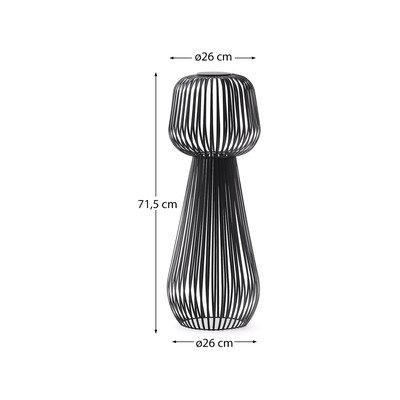 LED stolové vonkajšie svietidlo Reiba od značky Kave Home. Štruktúra z kovových tyčí vytvára jedinečnú hru svetla a tieňov.