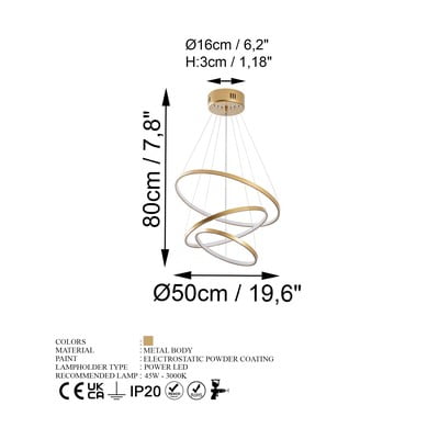 LED, kovové, v zlatej farbe, ø 50 cm, výška 80 cm