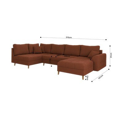 Menčestrová, pravý roh/do tvaru "U", v tehlovej farbe, viacmiestna, šírka 310 cm