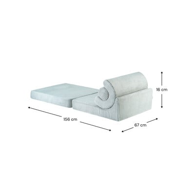 Kresielko Flipster od značky Wigiwama je multifunkčný kúsok nábytku, ktorý sa skvele hodí do každej detskej izby alebo herne. Je navrhnuté na sedenie aj spanie a ľahko sa premení na detskú posteľ alebo hrací bunker. Vďaka nastaviteľnému operadlu a mäkkému dizajnu ponúka pohodlie a flexibilitu. Kresielko je vhodné pre deti vo veku 5 – 11 rokov. Rozložené má rozmery 67 x 156 x 16 cm. Menčestrový poťah je snímateľný a možno ho prať v práčke na 30 °C s podobnými farbami. Potom ho nechajte voľne uschnúť.