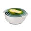 Nest Universal Bowl Set od Josepha Josepha je praktická, priestorovo úsporná súprava riadu, ktorá obsahuje jedinečný rad nástrojov na prípravu jedla. Jeho inovatívny dizajn umožňuje skladanie jednotlivých prvkov, vďaka čomu je na jednej strane praktickým riešením do malých kuchýň a na druhej strane je krásnym a užitočným doplnkom každej domácnosti. Detailný obsah sady: - Miska s protišmykovou úpravou (4,5 l), - cedník (3 l), - sitko (1,65 l), - malá protišmyková miska s vnútornou drážkou (0,5 l), - plastové odmerky s dvojitým označením (pohár/ml) s kapacitou 250 ml, 125 ml, 85 ml, 60 ml a 40 ml.