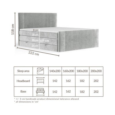 Dobré vedieť: vzhľadom na ručnú výrobu produktu a špecifickosti poťahových látok je tolerancia daných rozmerov +/- 3 cm.