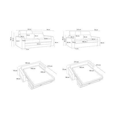 Ženilková, na každodenné spanie/polohovacia/rozkladacia, modrá, dvojmiestna, šírka 195 cm