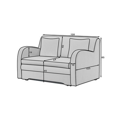Zamatová, rozkladacia, odolná proti škvrnám, modrá, dvojmiestna, šírka 130 cm, hĺbka 103 cm, hĺbka sedadla 64 cm