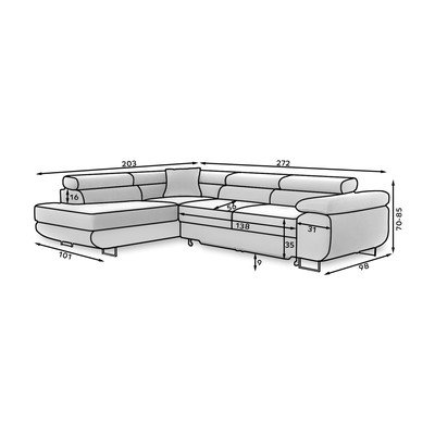 Zamatová, polohovacia/rozkladacia/s úložným priestorom, ľavý roh/do L, modrá, trojmiestna, šírka 275 cm