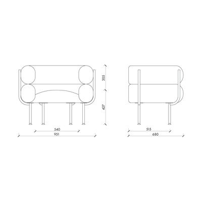 Kreslo Ubi od značky noo.ma. Vyniká svojou originálnou konštrukciou z mäkkých valcových prvkov a viditeľného kovového rámu.
