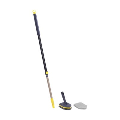 Tento mop od Maximex sa vyznačuje špeciálne tvarovanou 180° otočnou hlavou a teleskopickou rukoväťou, ktorá predlžuje jeho dĺžku až na 147 cm - takže ľahko odstráni nečistoty aj z ťažko dostupných miest v interiéri aj exteriéri. Súčasťou sú celkom dva vymeniteľné nástavce - kefa s hrubými štetinami na húževnatú špinu a jemný nástavec ideálny najmä na leštenie hladkých povrchov.