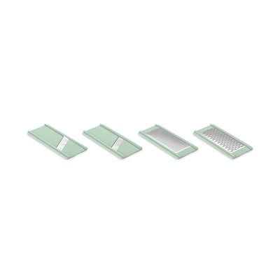 Multifunkčný krájač Tasty+ od značky Brabantia je skvelý pomocník do každej kuchyne. Súprava obsahuje priehľadnú škatuľku a štyri vymeniteľné strúhadlá a krájače: jemné strúhadlo, hrubé strúhadlo, tenký krájač a veľký krájač. Vďaka šikovnému držiaku môžete krájať syr alebo zeleninu až do konca bez rizika poranenia.