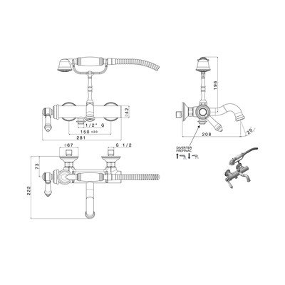 Táto nástenná mosadzná batéria je navrhnutá pre dva výstupy, a teda pripojenie napríklad k ručnej a hlavovej sprche. Meniť medzi nimi môžete pohodlne prostredníctvom tlakového prepínača. Dodávaná je spoločne s ručnou sprchou a hadicou.