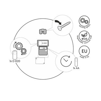 Nástenné hodiny Archie od značky Styler. Otvorený mechanizmus s viditeľnými ozubenými kolieskami dodáva interiéru jedinečný industriálny šarm.