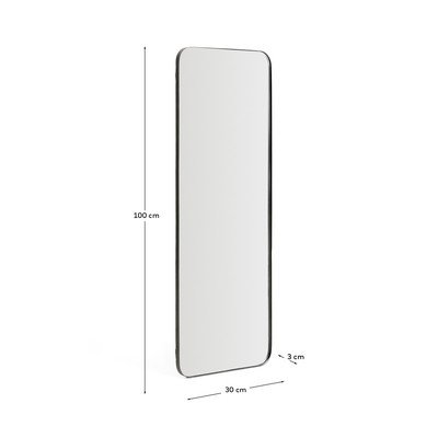 Nástenné zrkadlo Marco od značky Kave Home sa pýši minimalistickým dizajnom a čistými líniami. Jeho tenký kovový rám dodáva zrkadlu pevnosť a elegantný vzhľad, zatiaľ čo zaoblené rohy zjemňujú celkový dojem.