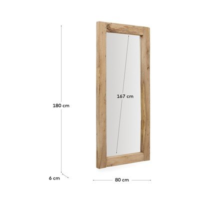 Nástenné zrkadlo Maden od značky Kave Home s dreveným rámom sa stane praktickým aj dizajnovým prvkom vášho domova. Vďaka svojmu jednoduchému obdĺžnikovému tvaru sa ľahko prispôsobí rozmanitým štýlom interiéru. Zrkadlo je vyrobené z recyklovaného dreva, čím prepája funkčnosť s moderným dizajnom.