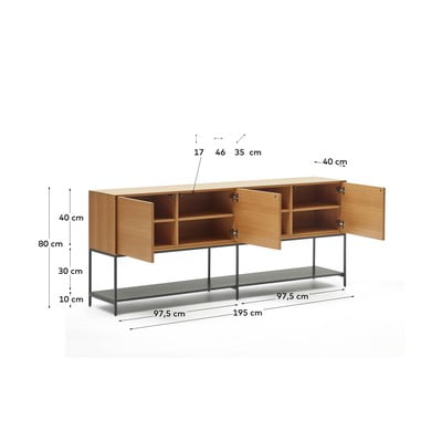 V dekore duba, z MDF, povrchová úprava: dyha/povrchová úprava: lakovanie, v prírodnej farbe, šírka 195 cm, výška 80 cm, hĺbka 40 cm