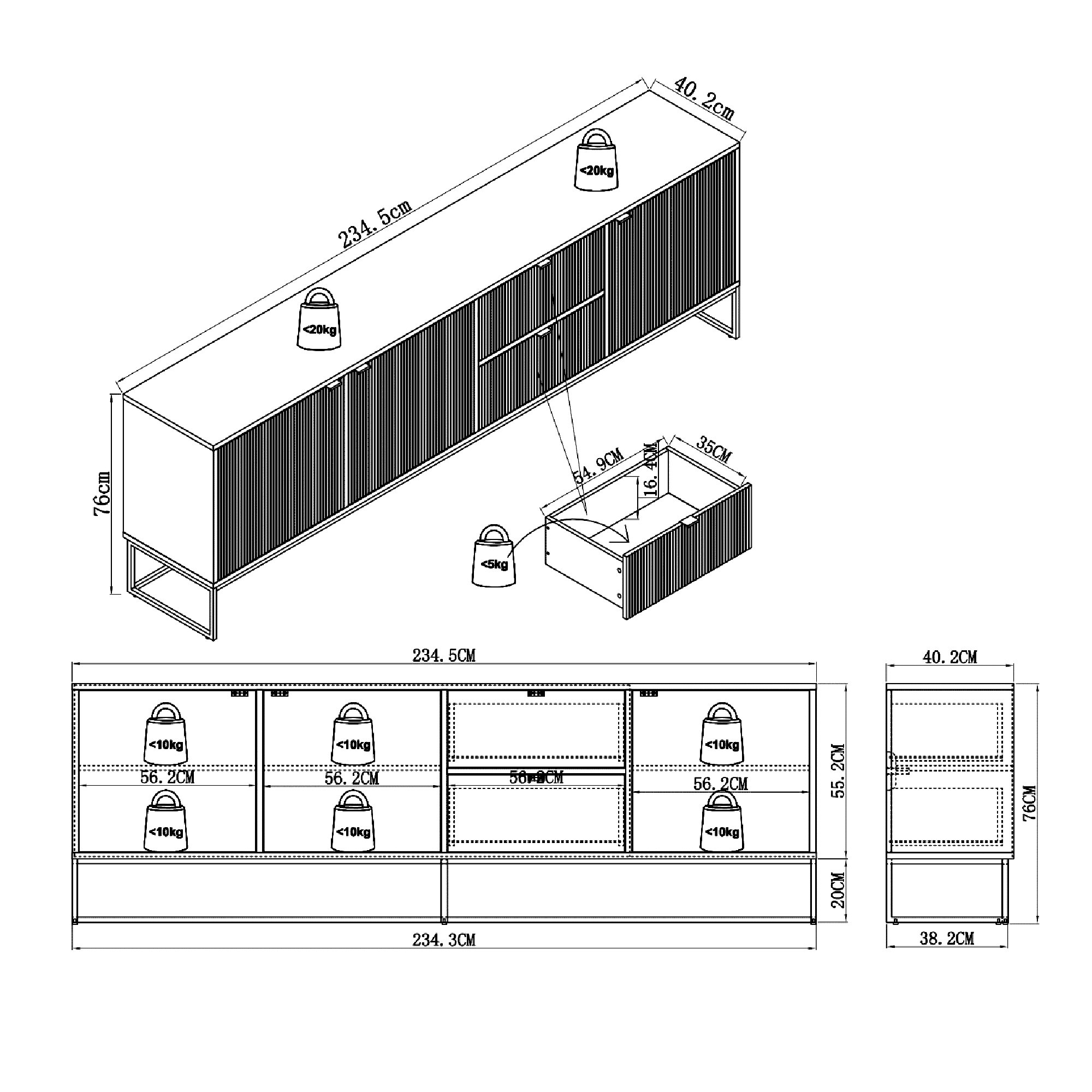 V dekore duba, z MDF, povrchová úprava: dyha, v prírodnej farbe, šírka 235 cm, výška 76 cm, hĺbka 40 cm