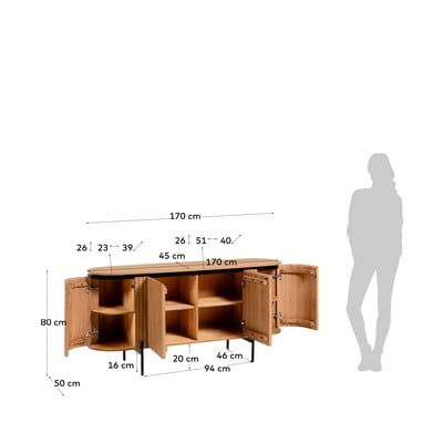 Z mangového drevaPovrchová úprava: bielenie/povrchová úprava: lakovanieMatnáV prírodnej farbeŠírka 170 cmVýška 80 cmHĺbka 49 cm