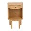 Nočný stolík Paron od značky Actona. Polkruhový dizajn s integrovanou zásuvkou a otvorenou policou ponúka praktický úložný priestor.