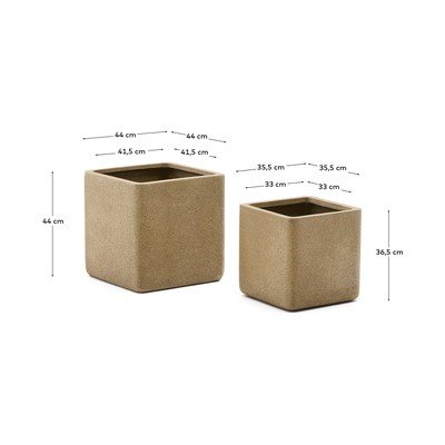 Súprava obalov na kvetináče Minoa od značky Kave Home predstavuje štýlové a funkčné riešenie pre vaše rastliny. Tieto dva obaly s jednoduchými líniami a kubickým, minimalistickým dizajnom sú všestranným doplnkom, ktorý sa hodí do interiéru aj exteriéru. Každému priestoru dodajú moderný a elegantný nádych.