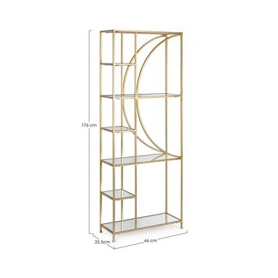 Knižnica Elenor od značky Bizzotto. Zlatá farba a netradičný zakrivený dizajn podčiarkujú jej eleganciu a premenia bežnú stenu na štýlovú galériu.