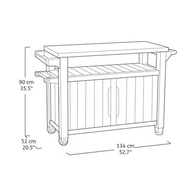 Skladací stôl Keter sa stane nepostrádateľným pomocníkom vo vašej vonkajšej kuchyni. Okrem praktického úložného priestoru, do ktorého uložíte všetko potrebné na letné grilovanie, stôl poskytuje nerezovú pracovnú dosku ideálnu na prípravu všetkých potrebných surovín.
