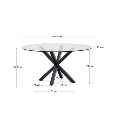 Okrúhly jedálenský stôl so sklenenou doskou ø 150 cm Argo – Kave Home
