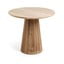 Vďaka viditeľnej kresbe dreva si stôl zachováva svoju autentickosť a dodáva interiéru osobitý charakter. Jeho okrúhla doska spočíva na zaujímavo riešenej podnoži tvorenej zvislými lamelami.