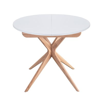 Okrúhly rozkladací jedálenský stôl s prídavnou doskou z jaseňového dreva ø 90 cm Jubi – Ragaba