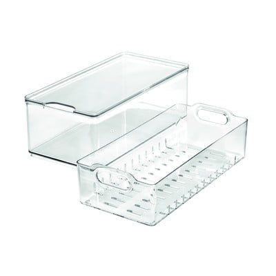 Modulárny organizér do chladničky značky iDesign/The Home Edit je vyrobený z mimoriadne odolného plastu. Obsahuje odtokovú vaničku, ktorá sa dá tiež použiť samostatne ako sitko. Má odnímateľné veko.