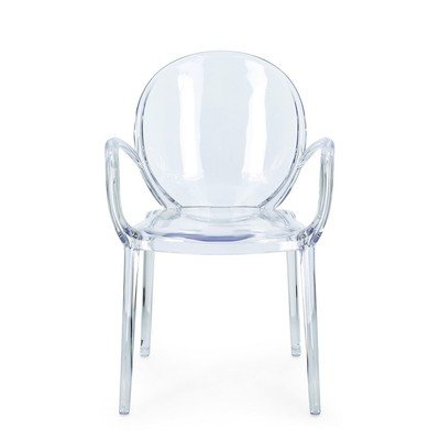 Plastová záhradná stolička Camilla od značky Bizzotto. Transparentné vyhotovenie pôsobí ľahko a vzdušne.