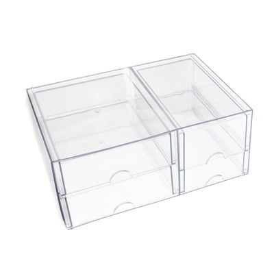 Organizér je rozdelený na dve časti vedľa seba. Každá časť ponúka dve výsuvné zásuvky, ktoré sú vybavené praktickým polguľatým výrezom na jednoduché otváranie.