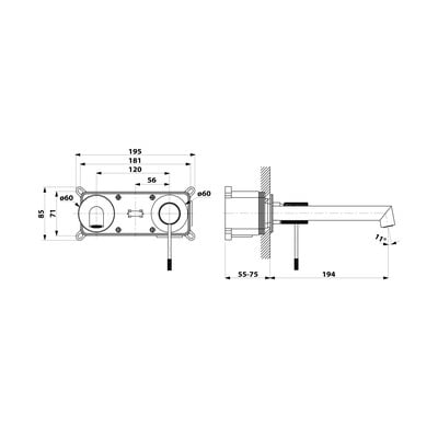 Táto dvojprvková mosadzná batéria sa hodí najmä na doplnenie umývadiel, ktoré nedisponujú otvorom na inštaláciu batérie. Je vybavená kartušou s priemerom 25 mm.
