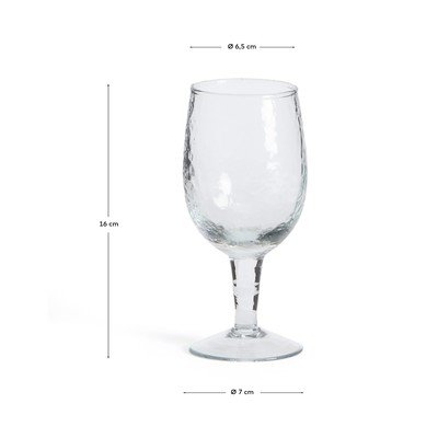 Pohár na víno Silma od značky Kave Home. Vďaka recyklovanému sklu, z ktorého je vyrobený, získava jedinečný charakter a prispieva k udržateľnosti.