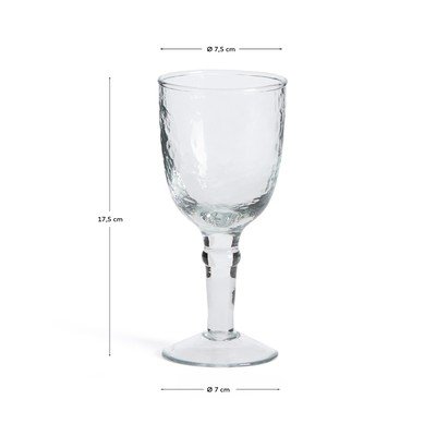 Pohár na víno Vinea od značky Kave Home. Je vyrobený z recyklovaného skla, ktoré zaručuje jeho odolnosť a jednoduchú údržbu.