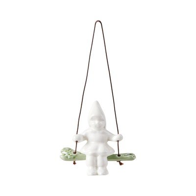 Keramická vianočná ozdoba v podobe bielo glazovaného dievčaťa s vianočnou čiapkou a drevákmi usadenými na zelenej matne glazovanej hojdačke prebúdza spomienky na príjemné chvíle strávené v zasneženej zimnej prírode. Z rovnakej série môžete zaobstarať ešte ozdobu v tvare