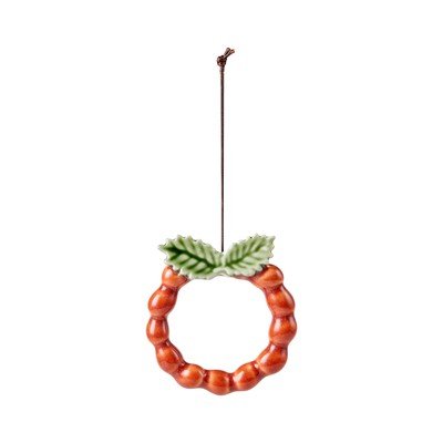 Keramická vianočná ozdoba v červeno-zelenej lesklej glazúre má tvar cesmínového venca a prenesie tak na váš vianočný stromček kúsok spiace zimnej prírody. Z rovnakej série môžete zaobstarať ešte ozdobu v tvare
