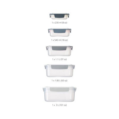 Jednotlivé nádoby do seba perfektne zapadajú a viečka sa zase zaklapávajú k sebe, čo eliminuje problém s hľadaním správneho viečka a uľahčuje ich skladovanie. Každá miska a viečko sú odlíšené, aby bolo spárovanie čo najjednoduchšie.