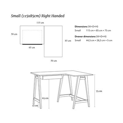 Pracovný stôl Luka je vybavený zásuvkou s veľkosťou 44,5 x 28,5 x 5 cm. Vďaka nej budete mať všetko poruke a zároveň aj priestranné pracovné prostredie.