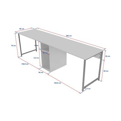 Matný pracovný stôl 60x240 cm Twin – Kalune Design