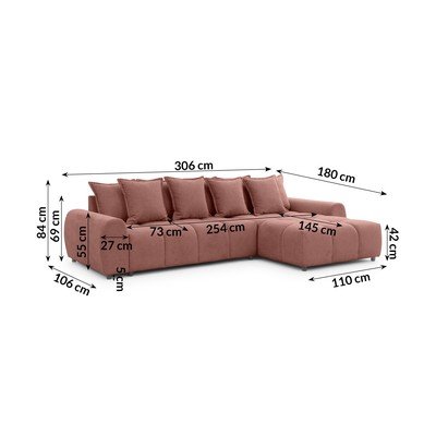 Pravý roh/s leňoškouV terakotovej farbeVodoodolná/odolná proti škvrnámŠtvormiestnaŠírka 306 cm