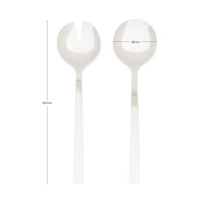 Šalátový príbor Nirela od značky Kave Home je praktickým doplnkom do každej kuchyne. Súprava dvoch nehrdzavejúcich príborov, z ktorých jeden má tvar dierovanej lyžice a druhý plnej lyžice, je navrhnutá na jednoduché servírovanie šalátov.