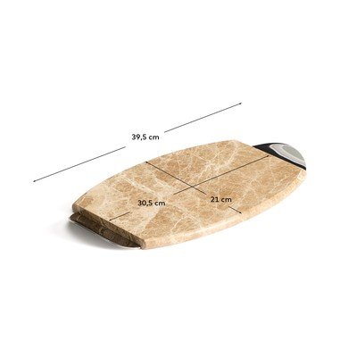 Servírovacia mramorová doštička Adoma od značky Kave Home sa pýši sofistikovaným a nadčasovým charakterom, ktorý prinesie funkčnosť a štýl do každej kuchyne. Je vyrobená z mramoru, materiálu známeho pre svoju odolnosť a eleganciu, doplnená o kovové detaily, ktoré jej dodávajú moderný nádych. Vďaka svojmu oválnemu tvaru a mramorovému vzoru je navyše aj krásnym doplnkom.