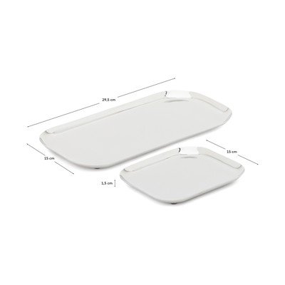 Súprava obsahuje dva tácky obdĺžnikového tvaru so zaoblenými rohmi, ktoré sa skvele hodia na servírovanie rôznych pochutín.