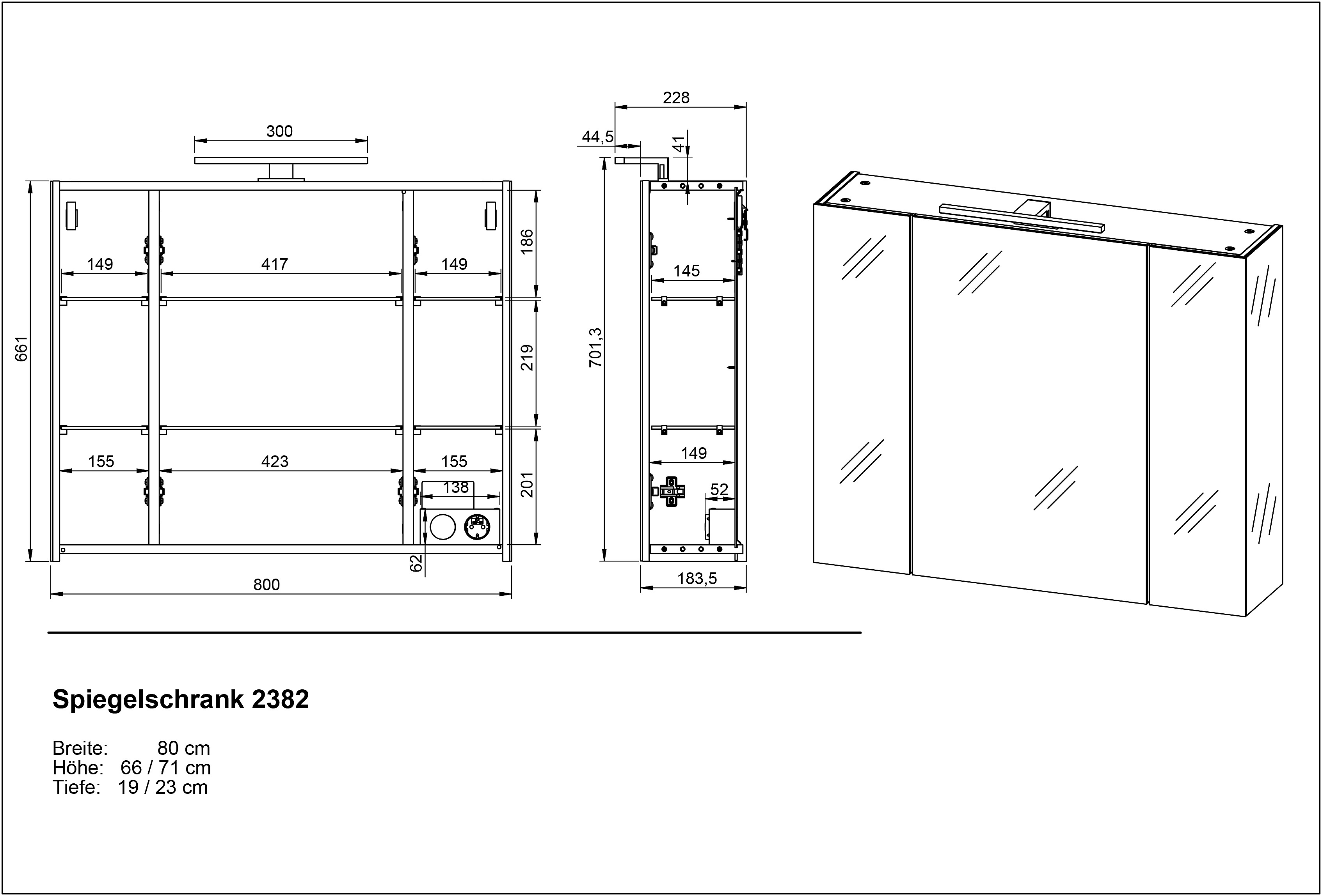 Závesná/so zrkadlom/s osvetlením, z drevotriesky, povrchová úprava: melamín, sivá, šírka 80 cm, výška 71 cm, hĺbka 13 cm