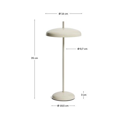 Stolová lampa Porte od značky Kave Home. Vďaka nabíjateľnej batérii a nastaviteľnej výške s odnímateľným tienidlom je mimoriadne všestranná.