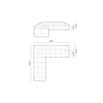 Pravý roh/ľavý roh/do L, sivá, viacmiestna, šírka 310 cm