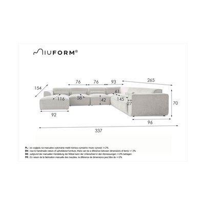 Pravý roh/do tvaru "U"TmavosiváViacmiestnaŠírka 337 cmHĺbka 265 cmHĺbka sedadla 58 cm