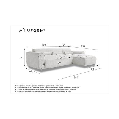 Pravý roh/s leňoškouTmavosiváTrojmiestnaŠírka 264 cmHĺbka 154 cmHĺbka sedadla 58 cm