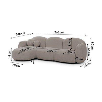 Z textílie bukléĽavý roh/s leňoškouSiváVodoodolná/odolná proti škvrnámŠtvormiestnaŠírka 268 cm