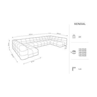 Veľkolepé priestory si žiadajú dominantné kúsky. Pohovka Kendal zažiari vďaka modernému dizajnu a príjemného povrchu zo zamatového úpletu. Úplet je tiež veľmi odolný. Pohovka je teda skvelou voľbou pre majiteľov domácich maznáčikov.