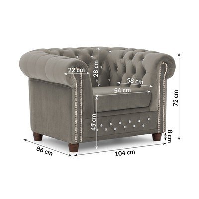 Sivé zamatové kreslo chesterfield York Blik – Ropez