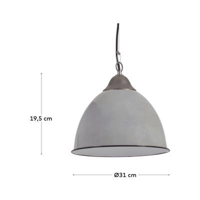 Stropné svietidlo Neus od značky Kave Home je vyrobené z kovu s povrchovou úpravou v šedej farbe. Svietidlo má jednoduchý tvar s hladkým, matným tienidlom. Je vhodné pre žiarovky s päticou E27, žiarovka nie je súčasťou balenia.